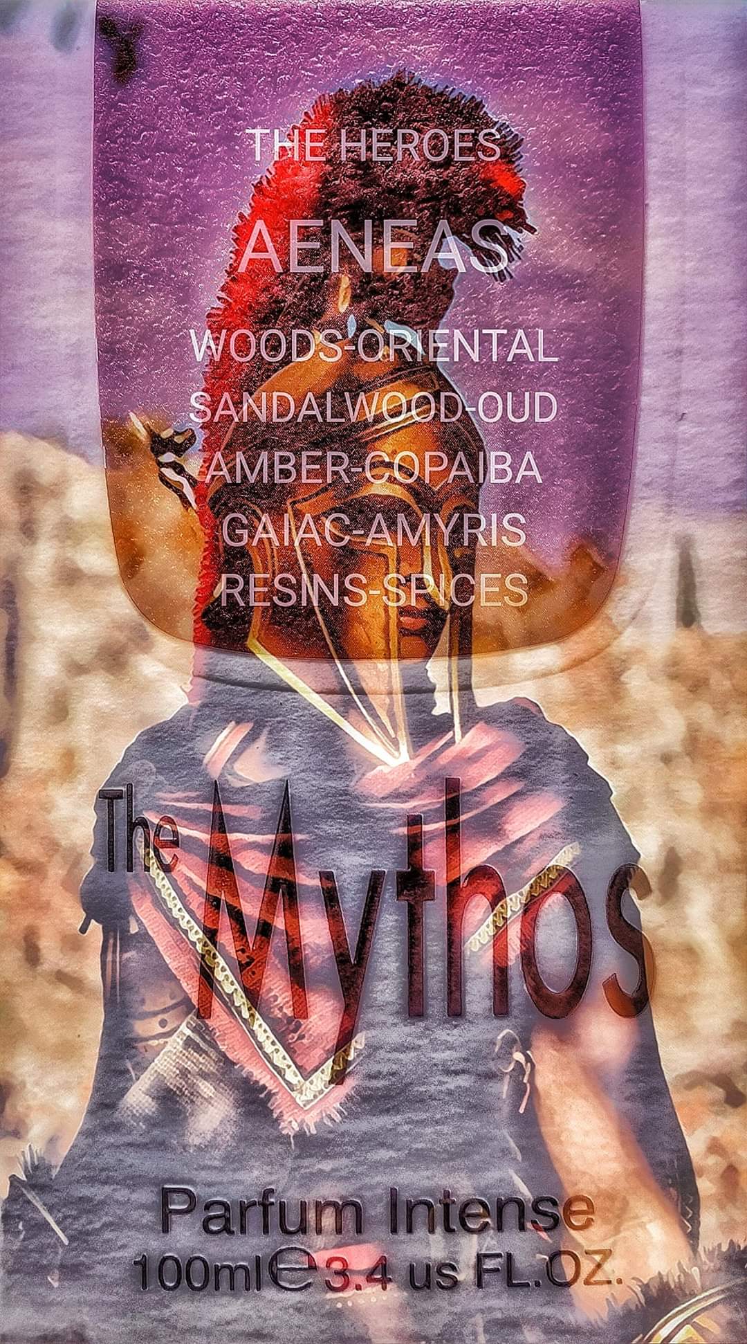 Il profumo AENEAS della famiglia THE HEROES,identificata con la sfaccettatura odorosa legnosa,è la descrizione olfattiva del personaggio mitologico ENEA. Enea,principe troiano,è un eroe sia greco che romano,figlio del pastore Anchise e di Venere.Condottiero valoroso e cugino di Priamo, partecipa alla guerra di Troia(dalla parte dei troiani),fu l'eroe che uccise più nemici di tutti,è il protagonista assoluto dell'Eneide di Virgilio per le sue gesta valorose e perché fu il fondatore di ROMA.Enea rappresenta l'uomo virile,forte e coraggioso ma obbediente agli dei, umile di fronte alla loro volontà.Il profumo che lo descrive è legnoso per rappresentare il valore e la sua forza maschile,caldo e protettivo,per il suo carattere obbediente e rispettoso...e impreziosito da legni rari per sottolineare l'importanza storica di questo eroe.