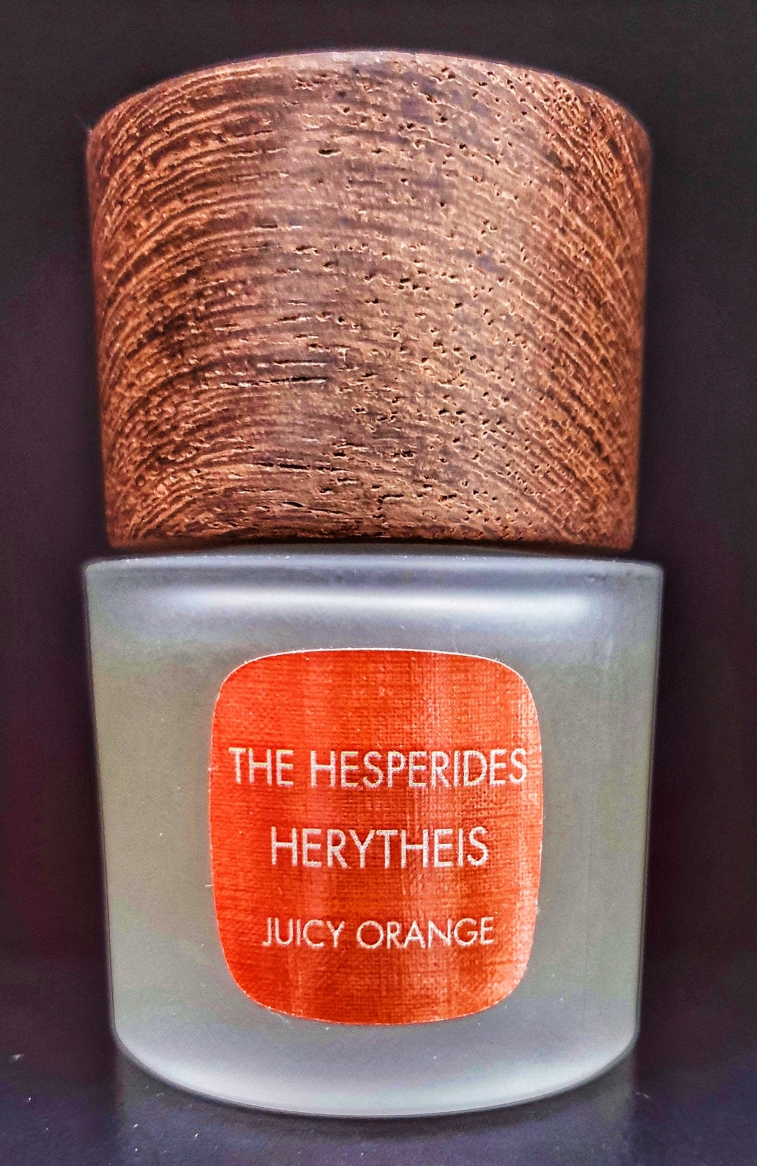 Il profumo agrumato HERYTHEIS è la descrizione olfattiva del mito della ninfa Eriteide.Nella linea THE MYTHOS PARFUM la famiglia THE HESPERIDES è identificata con tutti i profumi freschi agrumati ed Eriteide era una delle ninfe Esperidi che proteggevano l'albero dell'eterna giovinezza.HERYTHEIS era la signora in rosso,rappresentata sempre nell'attimo in cui offre i pomi d'oro dell'immortalità,nuda o con lunghissimi abiti di colore rosso intenso.Come le altre Esperidi Eriteide era anche custode di una parte del giorno,cioè quella che va dal tramonto alla sera,quando il sole ha perso il suo colore giallo intenso,è all'orizzonte e da arancio scuro diventa rosso e fa sembrare tutto rosso sia il mare che il cielo...per poi far posto alle prime ore della sera.La sua immagine è legata a tutta quella frutta rossa e dolce come arance e ribes;infatti la fragranza che la rappresentazione è a base di arance ed agrumi la cui polpa succosa è di un rosso arancio intenso e il suo aroma richiama quest'immagine di freschezza agrumata,raffinata,rossa,misteriosa